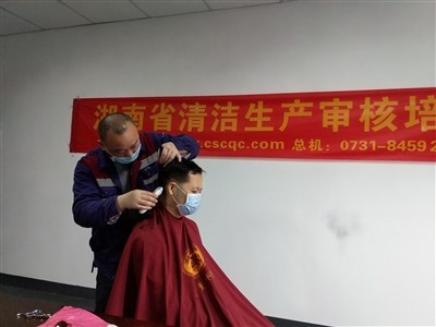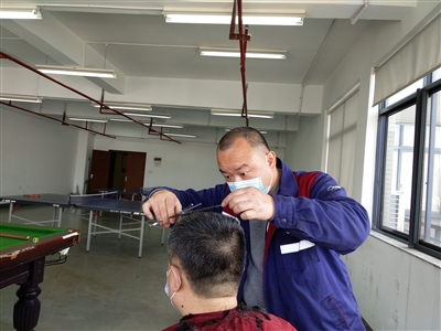 在午休和下班時間,搬來一把椅子、拿上剪發(fā)工具……鐘師傅的臨時“理發(fā)店”就這么開業(yè)了!