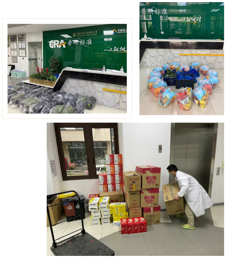 普研標(biāo)準(zhǔn)也積極做好充足的物資儲(chǔ)備,為堅(jiān)守一線(xiàn)的38位“防疫勇士”準(zhǔn)備一日三餐,提供牛奶、雞蛋等富含營(yíng)養(yǎng)的食品,并備足拖鞋、毛巾等生活類(lèi)物資。除了密切關(guān)注全體員工的身體狀況以外,公司積極了解大家的困難需求,為居家辦公的同事們共發(fā)放368份由蔬菜、水果、肉類(lèi)等組成的“愛(ài)心大禮包”。