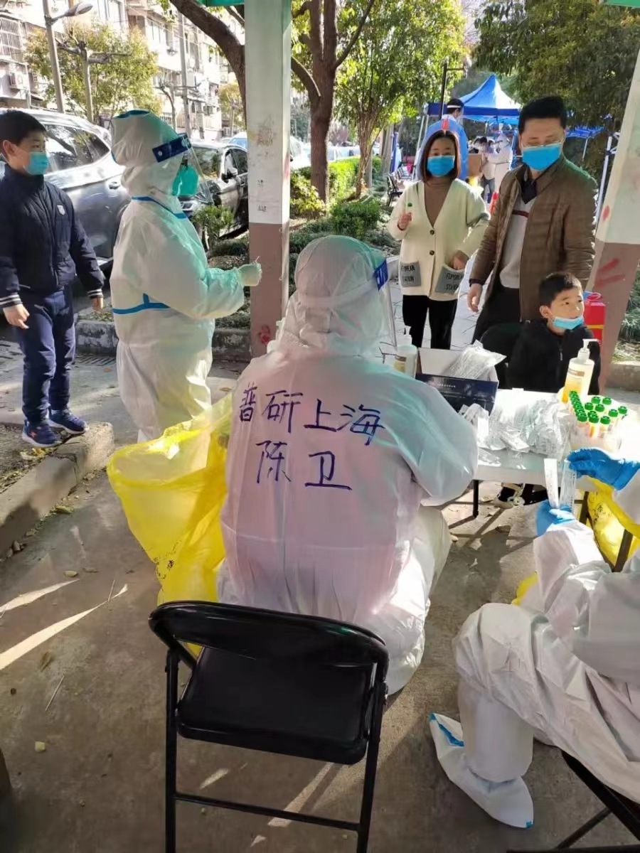 中國(guó)海誠(chéng)總部李紅新已連續(xù)20天在所在小區(qū)參與物資配送、核酸篩查、防疫站崗等工作,每輪協(xié)助發(fā)放7200余份抗原試劑到居民手中。程小龍加入“社區(qū)下沉黨員突擊隊(duì)”,已連續(xù)多日協(xié)助完成所在小區(qū)2188戶(hù)居民核酸檢測(cè)和物資保障任務(wù)。徐國(guó)偉參與社區(qū)生活物資的“最后一公里”轉(zhuǎn)運(yùn)。他說(shuō),保供應(yīng)工作是小區(qū)106個(gè)樓道、1532戶(hù)居民們的定心丸。
