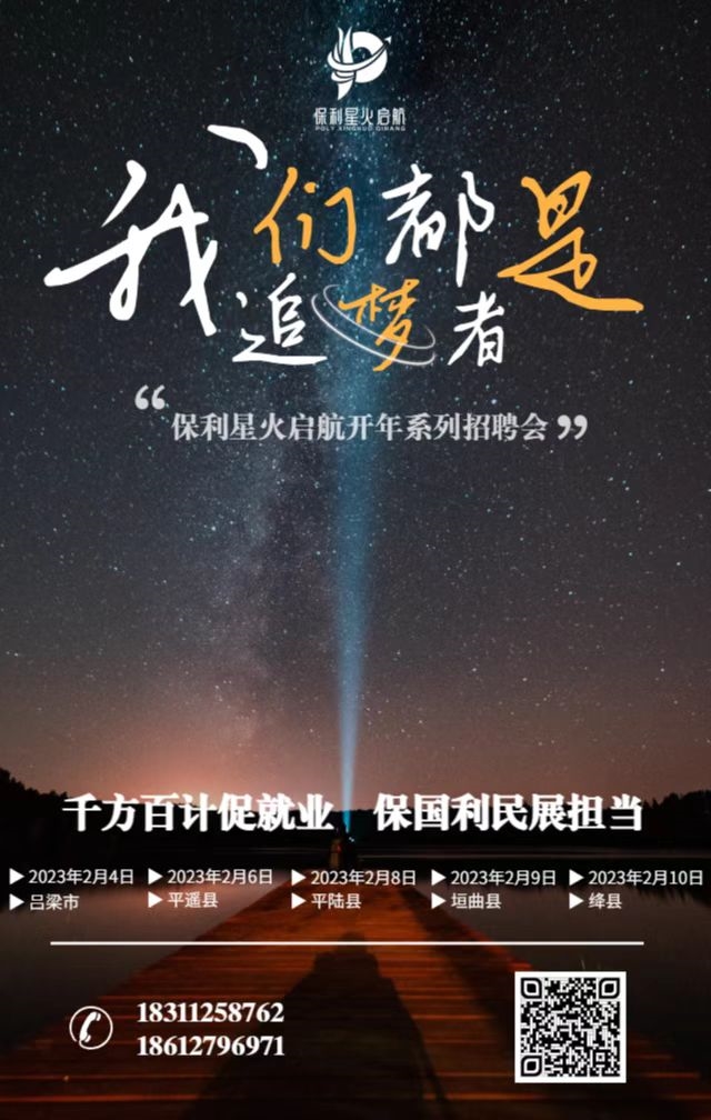 春風送真情,援助暖民心。為將更多境外優(yōu)質崗位提供給山西省群眾,助力當地群眾就業(yè)增收,2023年2月,保利中輕所屬中輕控股派遣的保利星火啟航項目組參加了山西省人力資源和社會保障廳在山西各地陸續(xù)舉辦的“惠民生 促就業(yè)”—春風行動暨就業(yè)援助月系列招聘活動,分別赴山西省晉中市平遙縣、呂梁市離石區(qū)、興縣、運城市平陸縣、垣曲縣等地現場招聘。
