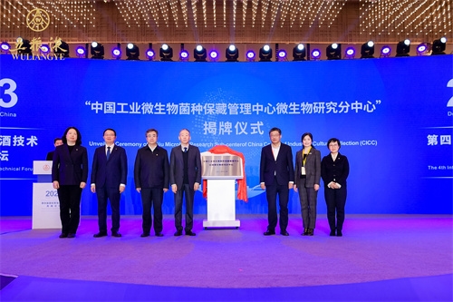 開幕式上,中國食品發(fā)酵工業(yè)研究院與宜賓五糧液股份有限公司共建的“中國工業(yè)微生物菌種保藏管理中心白酒微生物研究分中心”揭牌儀式順利舉行,保利中輕副總經(jīng)理,中國食品發(fā)酵工業(yè)研究院黨委書記、董事長肖丹與宜賓五糧液股份有限公司總工程師楊韻霞共同揭牌。安勝杰與中國酒業(yè)協(xié)會理事長宋書玉,農(nóng)業(yè)農(nóng)村部中國農(nóng)村技術(shù)開發(fā)中心副主任張松梅,五糧液集團(股份)有限公司黨委書記、董事長曾從欽,中國工程院院士、江南大學(xué)校長陳衛(wèi)共同見證。“中國工業(yè)微生物菌種保藏管理中心白酒微生物研究分中心”是按照國家標準菌種資源庫組建的白酒行業(yè)最大的菌種保藏平臺,該平臺現(xiàn)已收藏五糧液釀造微生物菌種400余種、1000余株、20000余份備份,為五糧液乃至中國白酒技術(shù)創(chuàng)新及生產(chǎn)應(yīng)用提供全面的菌種資源。