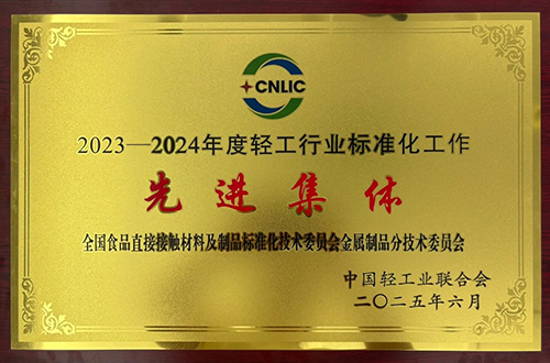 中國食品發(fā)酵工業(yè)研究院承擔(dān)秘書處單位的全國食品直接接觸材料及制品標(biāo)準(zhǔn)化技術(shù)委員會(huì)金屬制品分技術(shù)委員會(huì)獲得023—2024年度輕工行業(yè)標(biāo)準(zhǔn)化工作先進(jìn)集體”榮譽(yù)稱號(hào)。