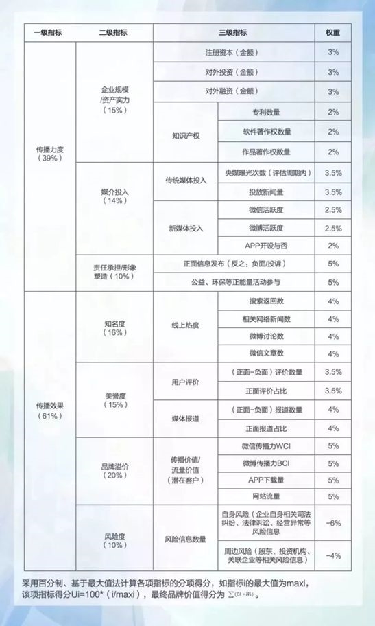 4.知名度:品牌為大眾所熟知的程度,出于可操作性,采用線上搜索數(shù)據(jù),包括在主流搜索引擎中的搜索返回數(shù)、相關(guān)網(wǎng)絡新聞數(shù)、微博討論數(shù)、微信文章數(shù);