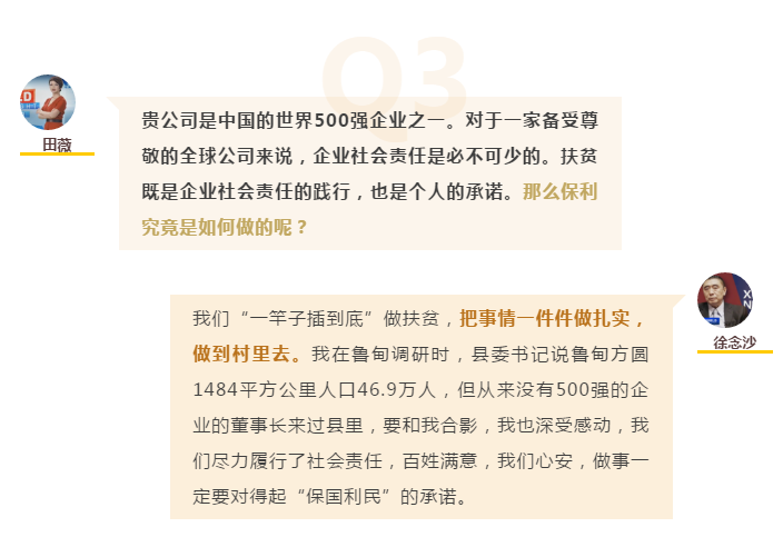 兩會期間,全國政協(xié)委員,中國保利集團有限公司黨委書記、董事長徐念沙接受中央廣播電視總臺CGTN World Insight節(jié)目專訪,講述保利脫貧攻堅責任舉措。
